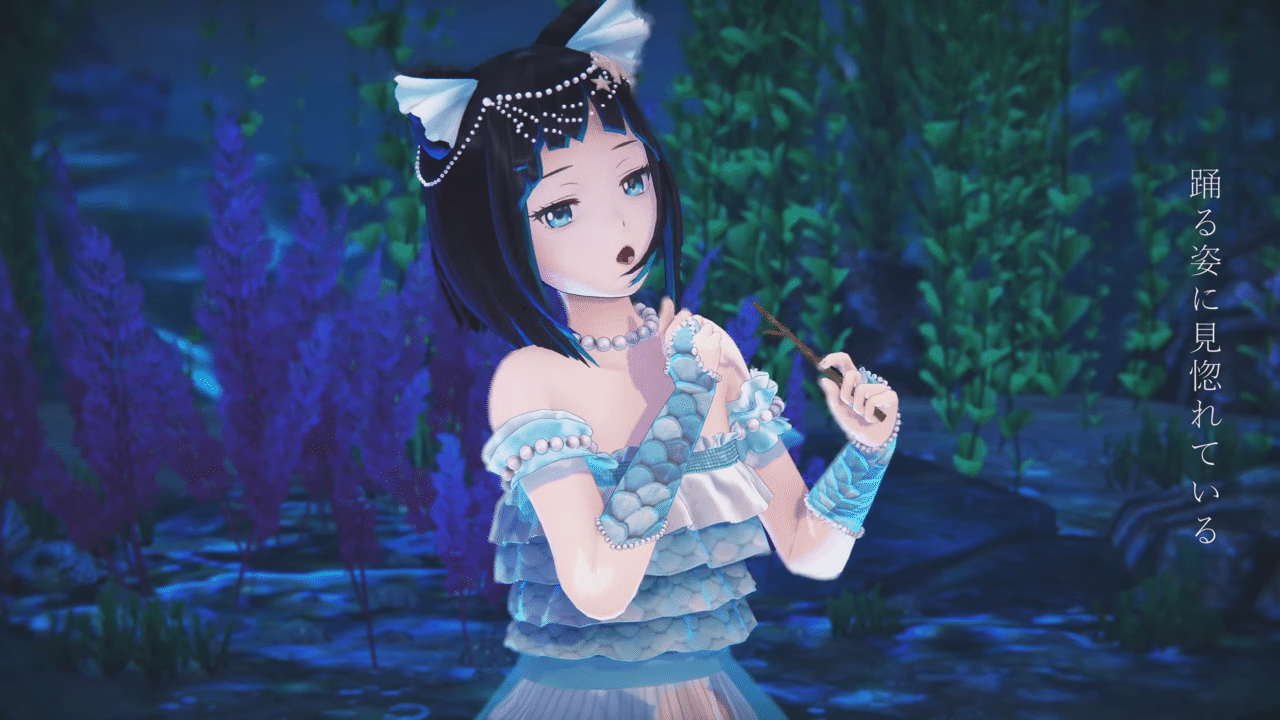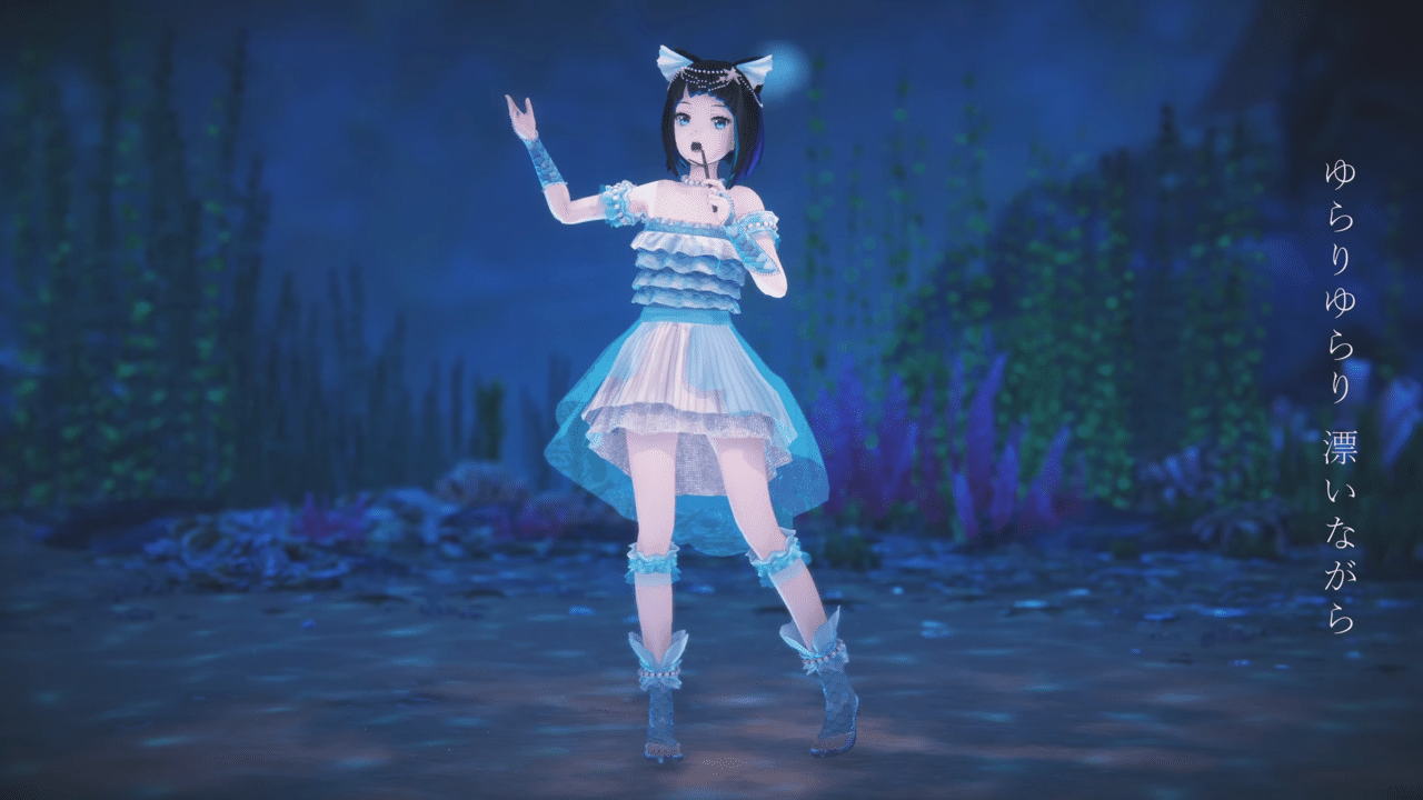 さらに猫耳の位置をはじめ、全身にヒレのようなフリルが付いています。このふわふわの衣装がダンスに映えて、まるで海の中を漂っているように見えます。