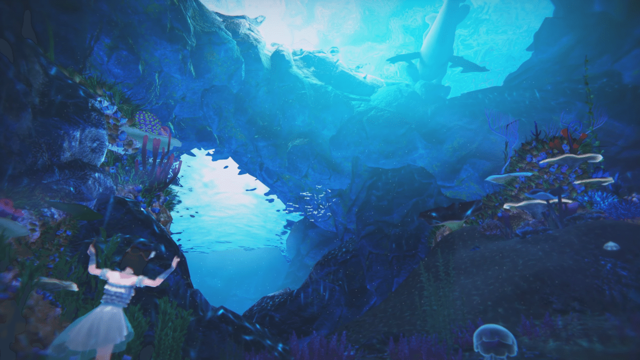 言葉なくとも『海面から海の底の世界に飲み込まれる。遠くから聞こえてくる歌声に惹かれ、岩影の奥にいるみずしーを見つける』というストーリーを体験できるわけですね。