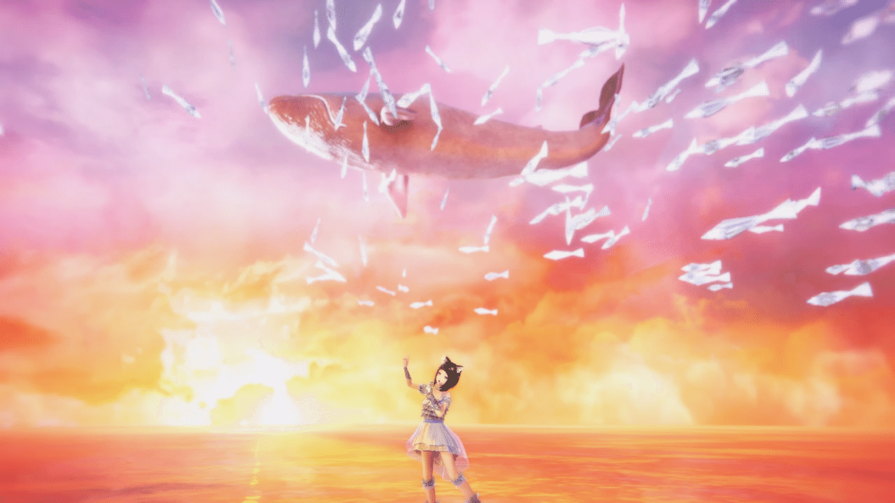 そして二度目のデュンと同時に現れる空飛ぶクジラ。幻想の世界だということが鮮烈に印象付けられます。このクジラの解釈はジェムファンのP田太郎さんのnoteを見てなるほど!と思いました。ここではざっくり『あこがれや夢の象徴』とします。